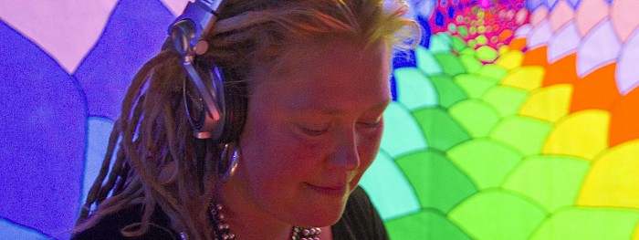 Polyesta is a DJ on a mission: Bring world music to the clubs and festivals by mixing ethnic, acoustic sounds with electronic beats. She spices up dance music with samples and recordings of world music or with live musicians.
